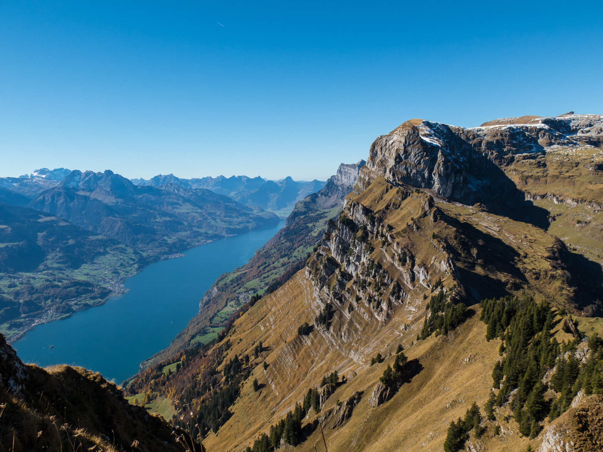 Blick vom Höchst Richtung SäntisWalensee mit Chäserugg rechts... und de Tödi Chaeserugg 14SEP14Vättis 30Sep17